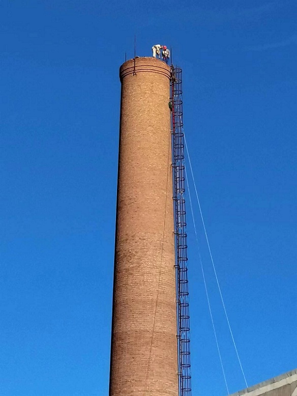 ②煙囪人工拆除方法:采取高空攀爬的作業(yè)方式登高到煙囪頂部,用拆除工具集合大錘、千斤頂進行簡體拆除,所拆磚塊要往煙囪內(nèi)部(或外壁)著落,在拆除時煙囪底部還要做好安全防護措施,預(yù)防有拆除的殘留磚塊或廢物高空墜落,具體要在煙囪上搭建一個安全平臺,這樣可以讓不小心墜落的殘留磚塊或廢物掉在安全平臺上,從而達到安全拆除的目標(biāo)。