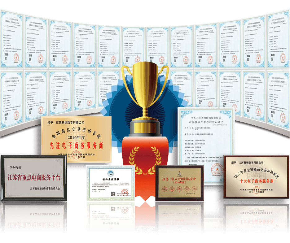 江蘇易銷互聯(lián)網(wǎng)科技公司是中國五金交電化工商業(yè)協(xié)會互聯(lián)網(wǎng)專業(yè)委員會會長單位、江蘇省浙江商會互聯(lián)網(wǎng)專業(yè)委員會會長單位、江蘇省互聯(lián)網(wǎng)服務(wù)學(xué)會副理事長單位,榮獲“全國商品交易市場系統(tǒng)十大電商服務(wù)商”、“全國商品交易市場系統(tǒng)先進(jìn)電商服務(wù)商”、“江蘇十佳互聯(lián)網(wǎng)創(chuàng)新企業(yè)”、“年度電子商務(wù)示范企業(yè)”