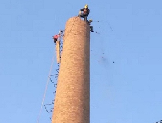 12.煙囪拆除施工人員進入施工現(xiàn)場必須穿好勞動防護用品,戴好安全帽,登高作業(yè)必須系好安全帶、安全繩,實行雙保險。