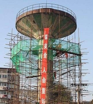 3、安全隱患大,50米水塔拆除時(shí)可分兩部分,30米以上部位采用人工拆除,10米以下部分可采用機(jī)械拆除。人工拆除全部為高空作業(yè),安全隱患大。
